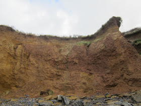 There is now no doubt in my mind that glacier tectonics have played a vary significant role in determining the appearance of this cliff face of 2017 -- and probably all earlier exposures, all the way back to 1916. The presence of large rafts of interglacial silt and clay sediments have confused some researchers (including Leach, Dixon, Bowen and Morey) who observed silts and clays ABOVE dark red till and who erroneously concluded that the till was of pre-Ipswichian age. A mistake easily made.............